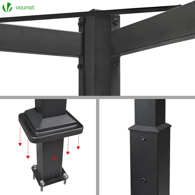 La structure est conçue en métal thermolaqué pour assurer une grande résistance aux intempéries et à la corrosion, tout en restant facile à entretenir. Sa toile polyester 180 g/m² assure une excellente protection solaire tout en apportant une touche chic à votre jardin.